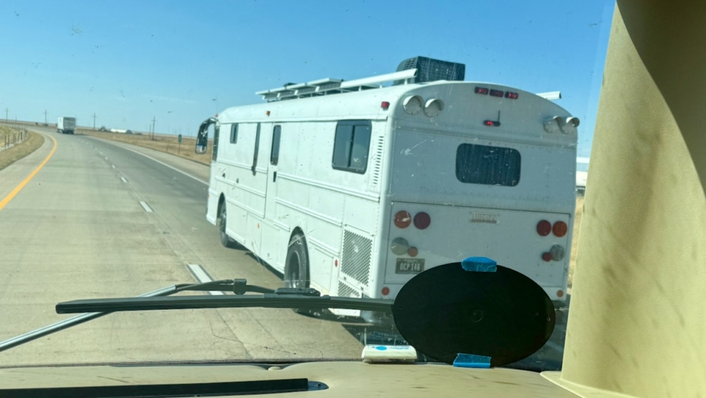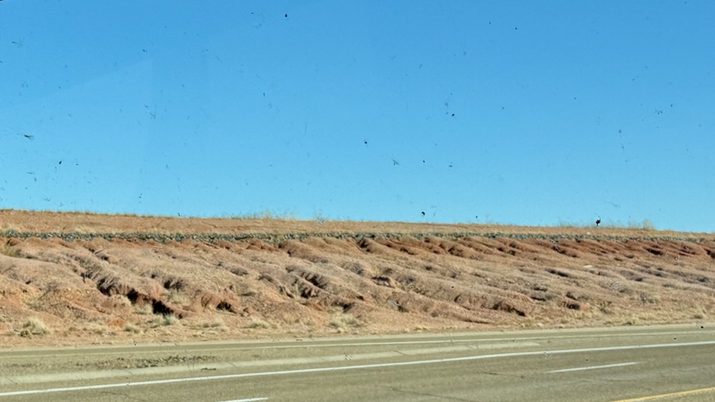 (susan here: there was one point where we were watching tumbleweeds circling in the wind. “Cool!” we thought. Then it hit us, the Super C (big and heavy) RV in front of us and the tractor trailer (even bigger) next to us. All three of us shifted. That sure was one scary moment!! 🙀)