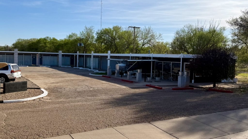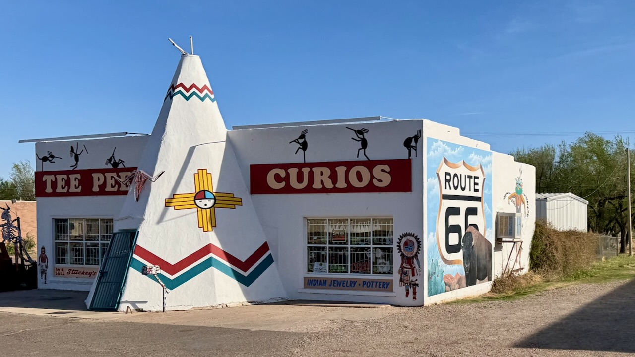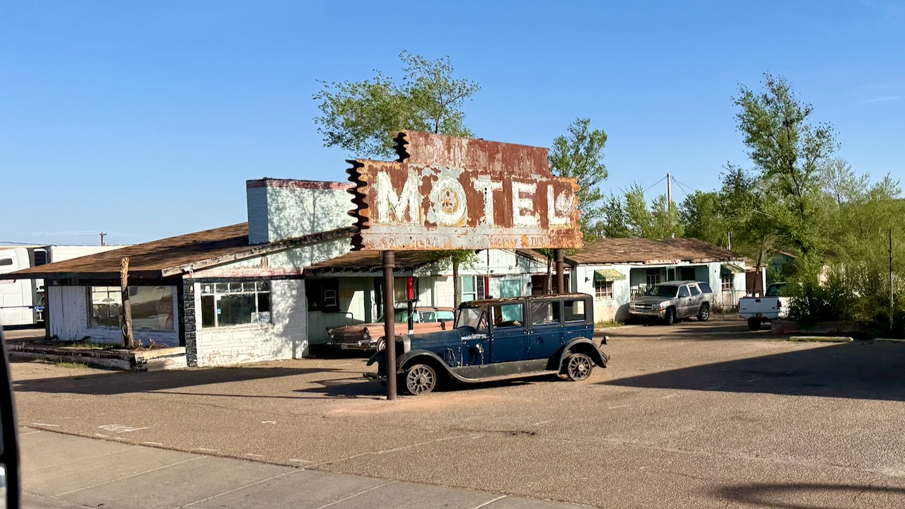 We made it to Tucumcari but went to a grocery store first. So we got to pass through town, it had several kitschy Route 66 buildings.