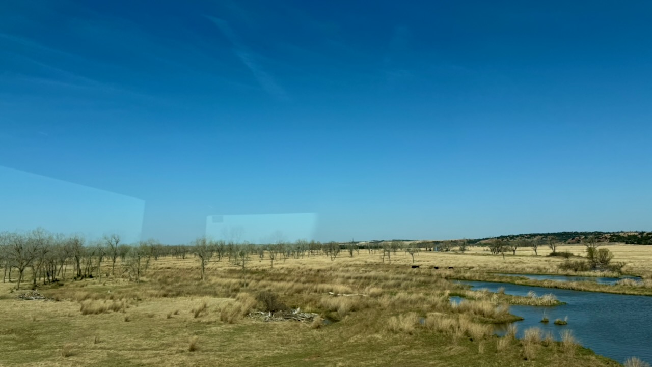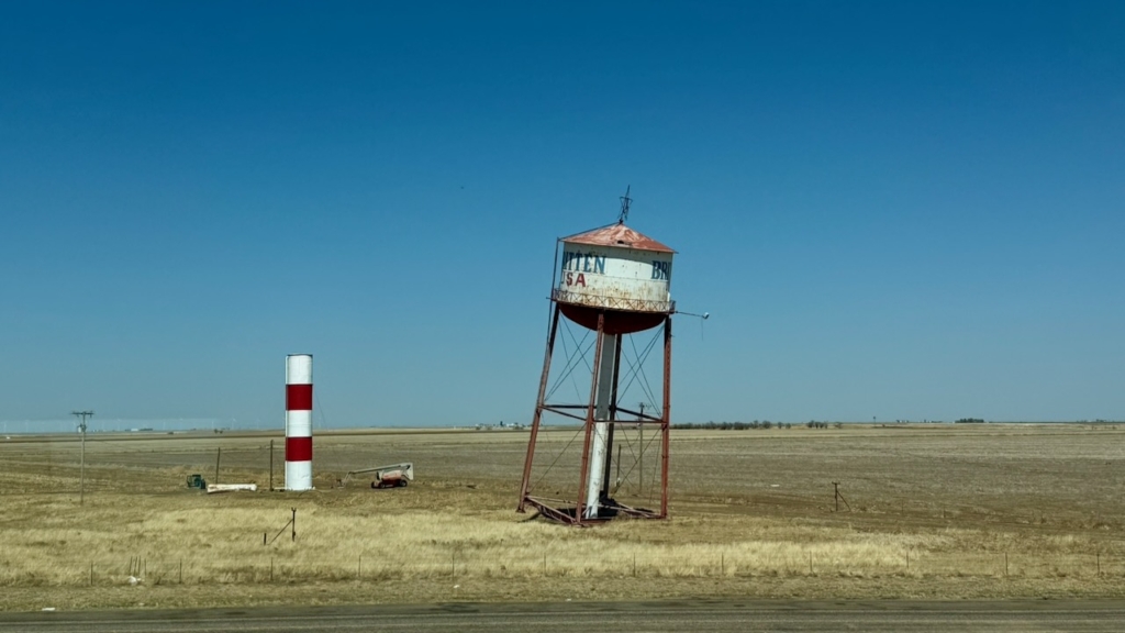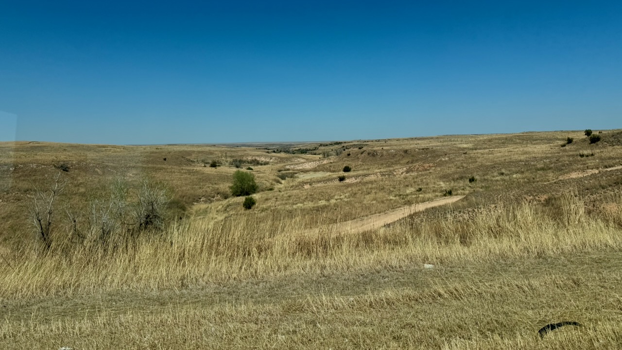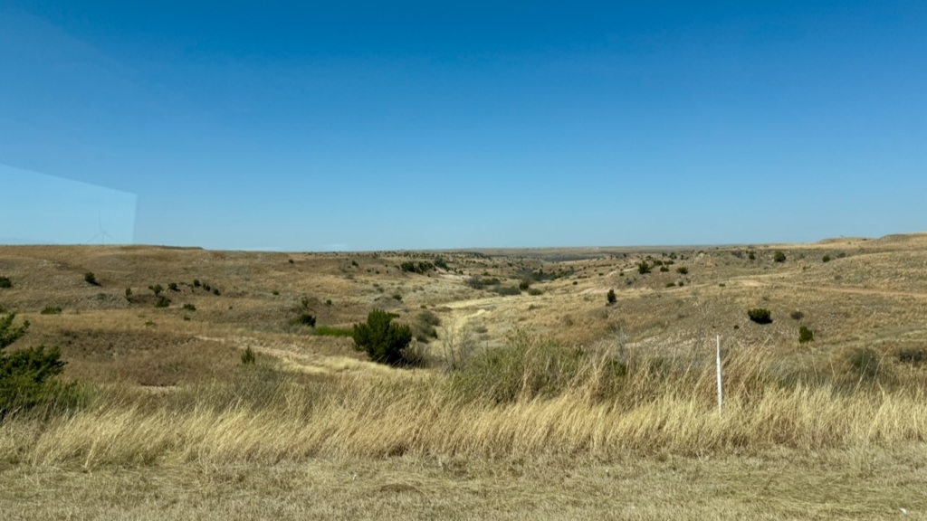 The roads are straight, but not flat, we’ve been climbing all day, topping out at 4,000 feet. It was really hard to keep the RV in 6th gear, it kept on dropping down to 5th, the revs would climb, it got a lot noisier, and gas mileage would drop. The good news is that partway through the trip the winds really died down. We were crossing a time zone today and we were lulled by the early arrival time on the GPS, we need to add an hour to our body’s time, so we bumped the speed up to 65mph or so.