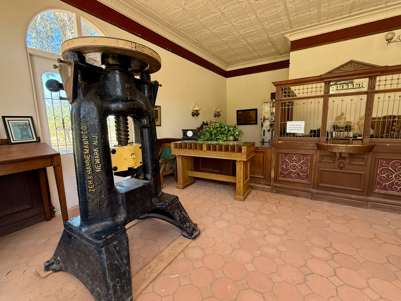 This is a coin press at the bank. There was also a paper money press.