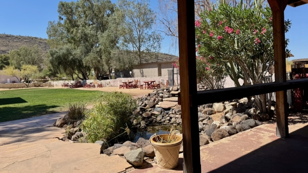 We were running so early that we couldn’t check into White Tank. A quick check on the Google Map and Paul spotted the Pioneer Living History Museum and it was a quick off and on stop. There was an in and out driveway, good. Except it wasn’t! The second driveway was for the Pioneer RV Resort. We should have turned in there but didn’t and we were forced to make a very sketchy U-turn on a very wide spot on the dirt a bit down the road.