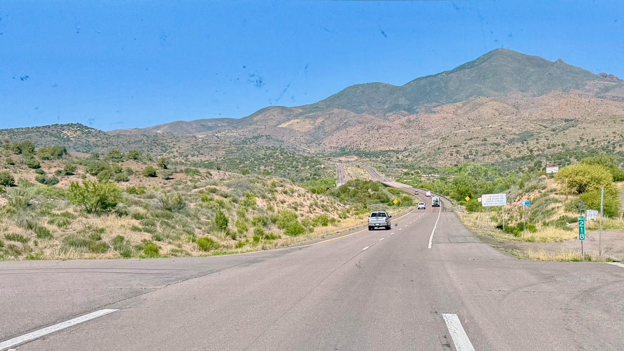 It took forever to get out of town. We needed gas and gas was the wrong way from where we wanted to go. But we got it done. We needed propane, but the propane person was out that day. So Susan headed over to the Speedway, which is in the heart of Payson, and much more congested. Paul followed since we planned on hooking up after gas just in case we had to back Clifford up. (You can’t backup while towing a car, not even a few feet.)