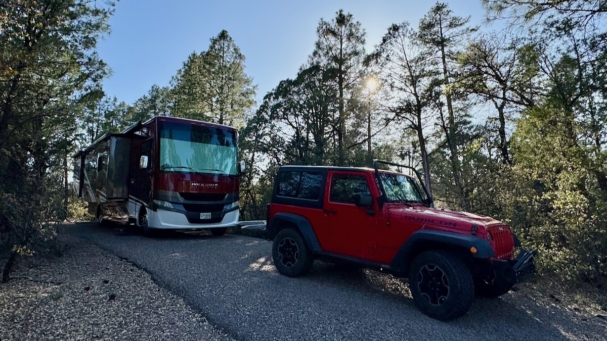Houston Mesa is a gorgeous, place. The spaces are a bit tight, but so heavily wooded you don’t notice. This is the view out our side window.