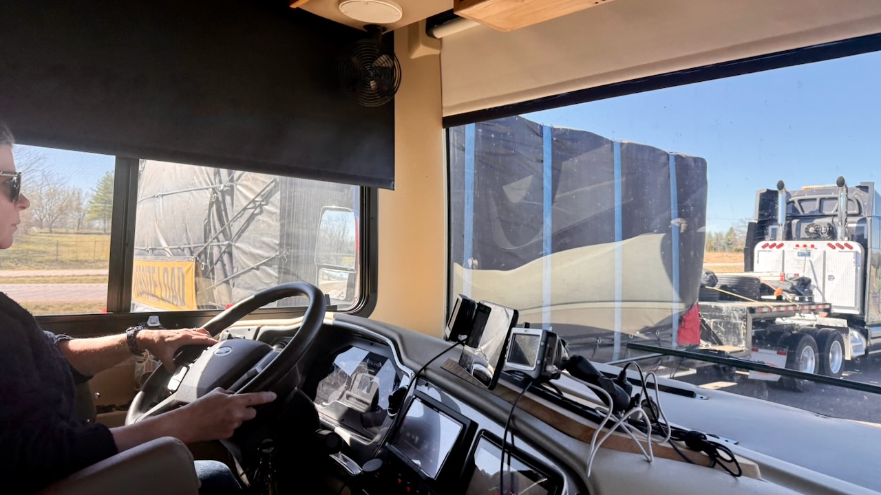 Susan really enjoyed this really wide load passing here. Just look at the smile on her face! (susan here: I’m not particularly fond of wide load trailers passing me so that’s actually intense concentration!)