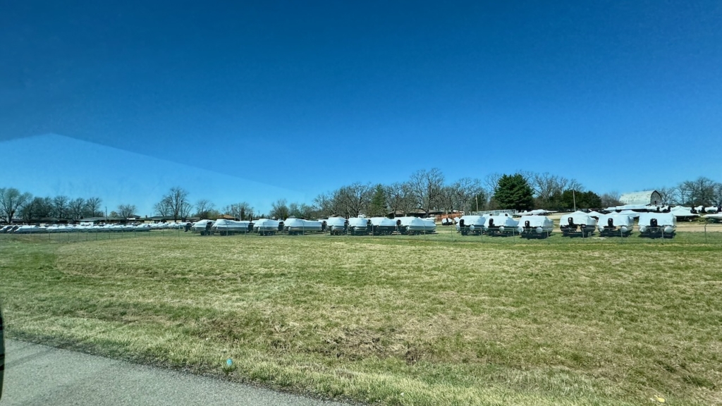 There must have been a half mile, or more, of boats. We’re guessing Spring is the busy time for new boat sales.