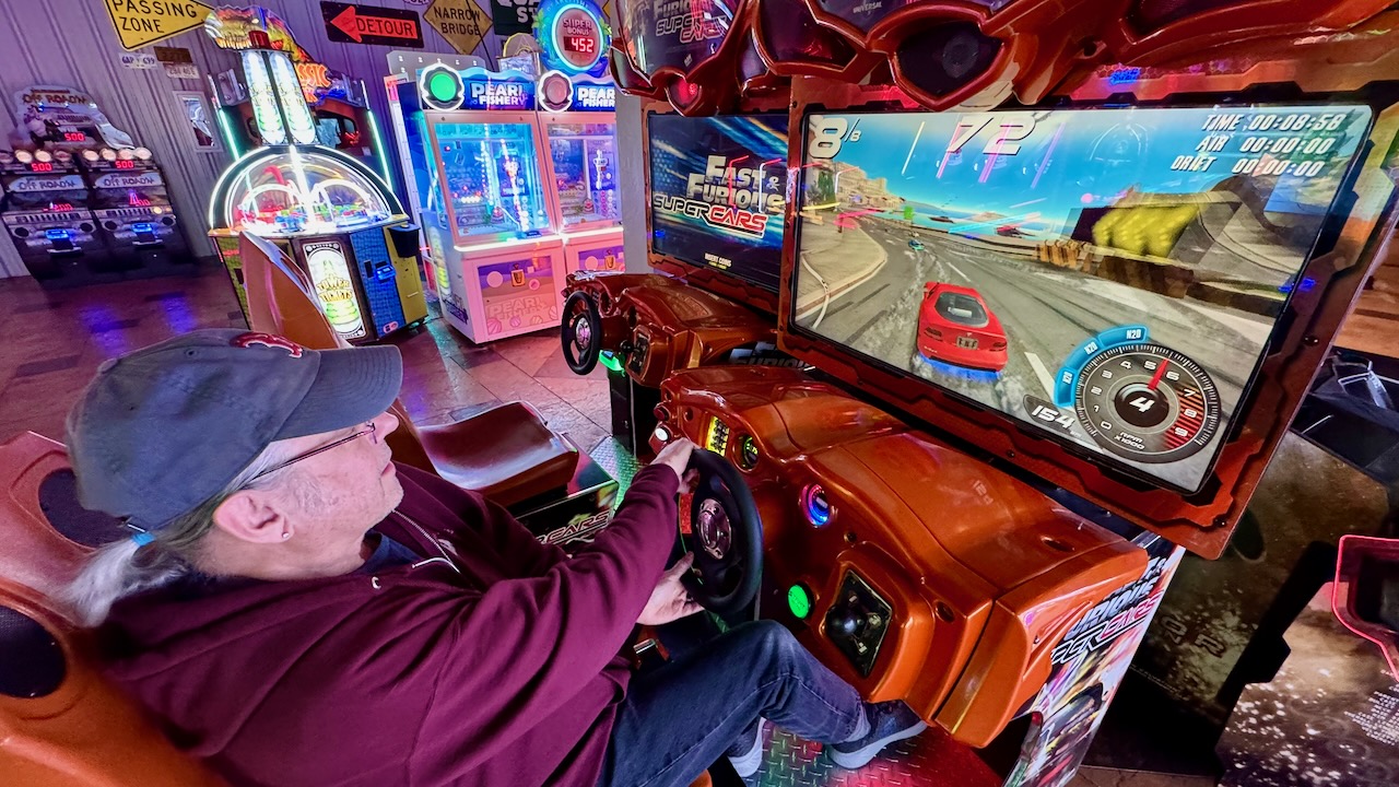 This racing game was fun, we raced against each other and some bots. Susan had to take a break between runs because it was making her dizzy.