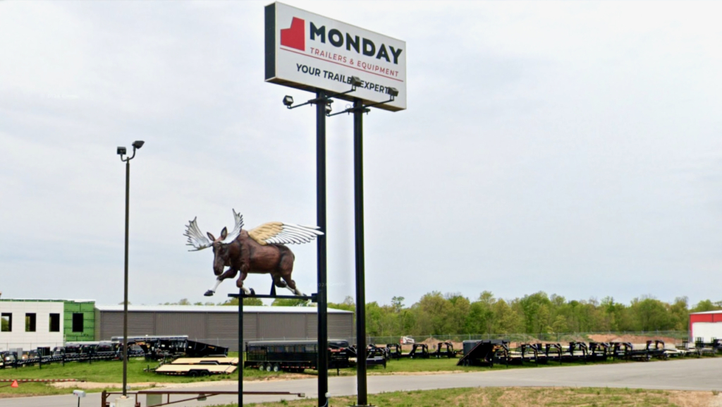 We thought it was “When pigs fly.” Apparently, moose fly too! This image is from Google maps: