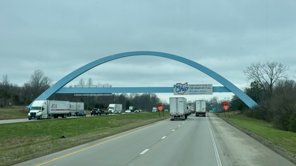 Ohio knows how to put out a welcome sign and a great “come back soon” sign! In case you think, “Well, that’s a lame goodbye sign.” Oh, no it’s not. It’s most awesome. See, that arch is part of the goodbye sign. Its sole purpose is to hang the sign on (there was a welcome sign going in the other direction).