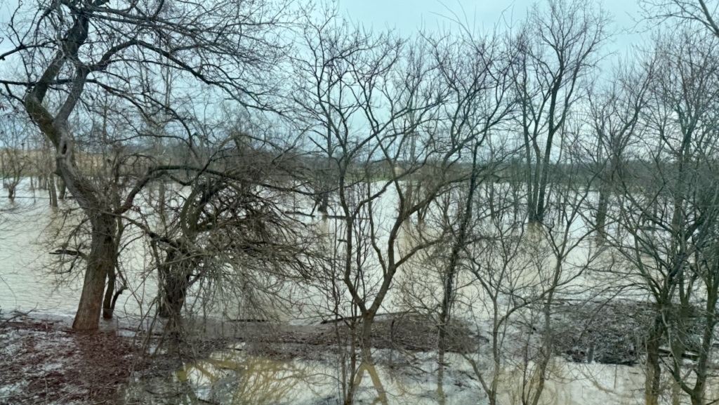 Remember the hard rains from last night? The forecast was for 1-2″ inches” of rain. We passed countless rivers and small streams overflowing their banks.
