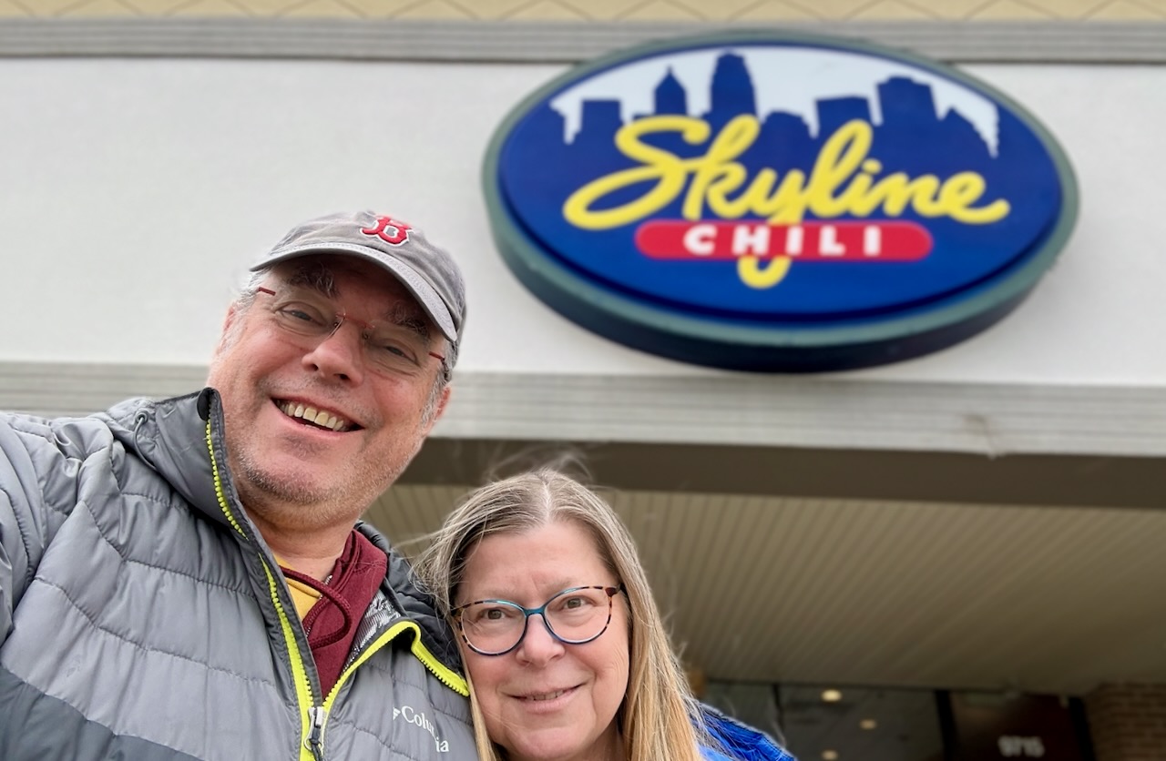 Back to the day’s events. Paul was busy putting in latitude and longitudes in the GPS. Why lat/long? We learned early on that street addresses sometimes take you to the wrong spot. Super inconvenient when you’re driving something that doesn’t bang a uey easily. Susan asked, “Lunch at Skyline?” Paul had given up on that since we couldn’t make Cincinnati, but Susan found one on the route! Paul got a big smile on his face. (Paul here, she’s great, isn’t she?)