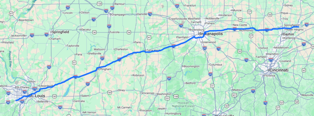 (The truly observant will notice that we never got of I-70 in the map. Please request a refund by putting your name and address on the back of a $20 bill.)