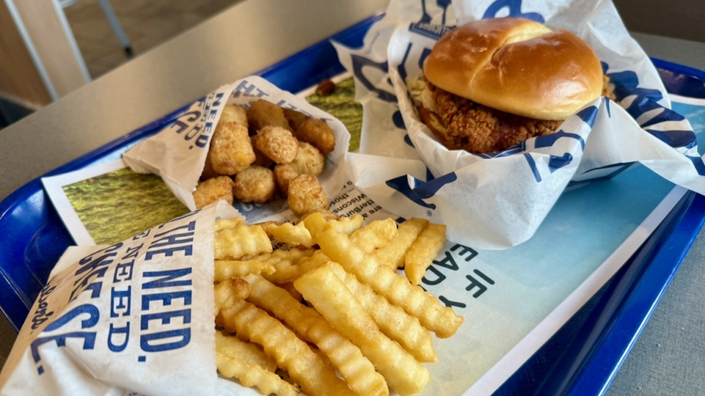 We really try to avoid chain restaurants, both at home and on the road. But there are two out here that we really like to grab at least once. Culver’s and Pollo Loco. Here’s there’s a chain called Culvers. It’s fast food in the sense that you get in and out quickly. But it’s made to order and they bring it to the table. We both got the spicy chicken sandwich. Paul liked his a lot. Susan had had the regular version last year and tried for the spicy this year. Susan was not a fan! Those are fried cheese curds, they were pretty good but not the best we’ve eaten.