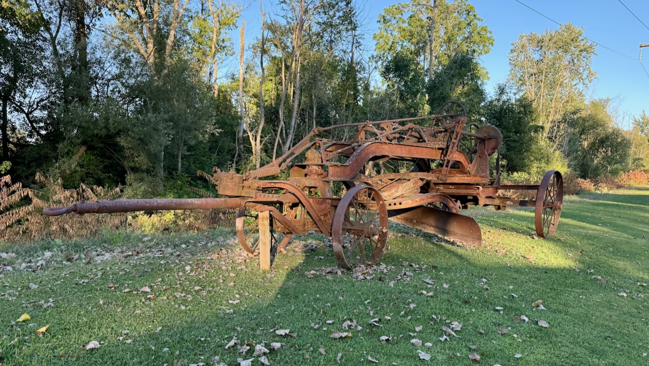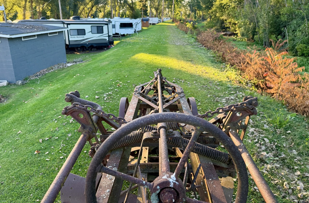 Check in was a breeze. We got to talking with one of the owners for a bit. Very nice guy. At our site we started the leveling and hooking up and dumping. While waiting for the water tank to fill (with really foul tasting water), Paul checked out this Galion EZ-Lift Leaning Wheel Grader. (We’ll go into detail about the grader and the history of the area tomorrow.)
