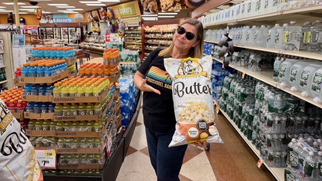 We were shopping at Tops Friendly Market which is a grocery store chain we’ve never been to before. This is probably a record for us finding a new chain so close to home. You expect that in Utah or Kansas, but in New York? So, as usually happens, the short trip to the grocery store turned into a long trip. We got there around 4pm and didn’t leave until around 5! Some of that is not knowing where things are and some of it is checking out local things, like the largest bag of popcorn either of us have ever seen.