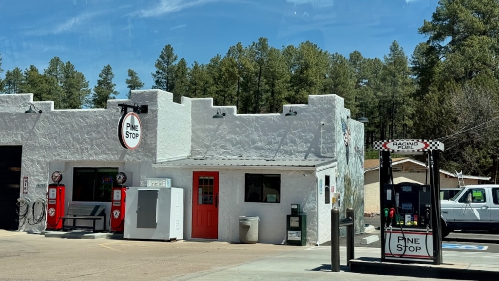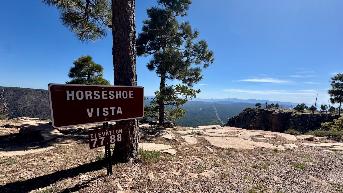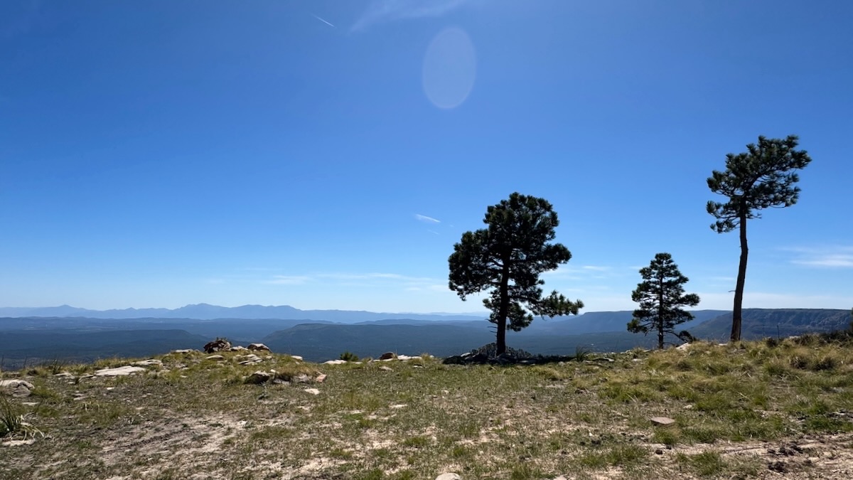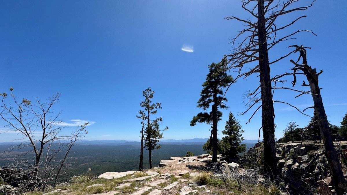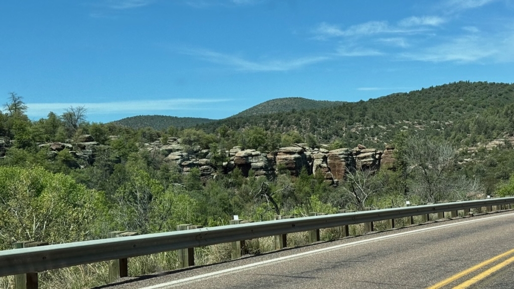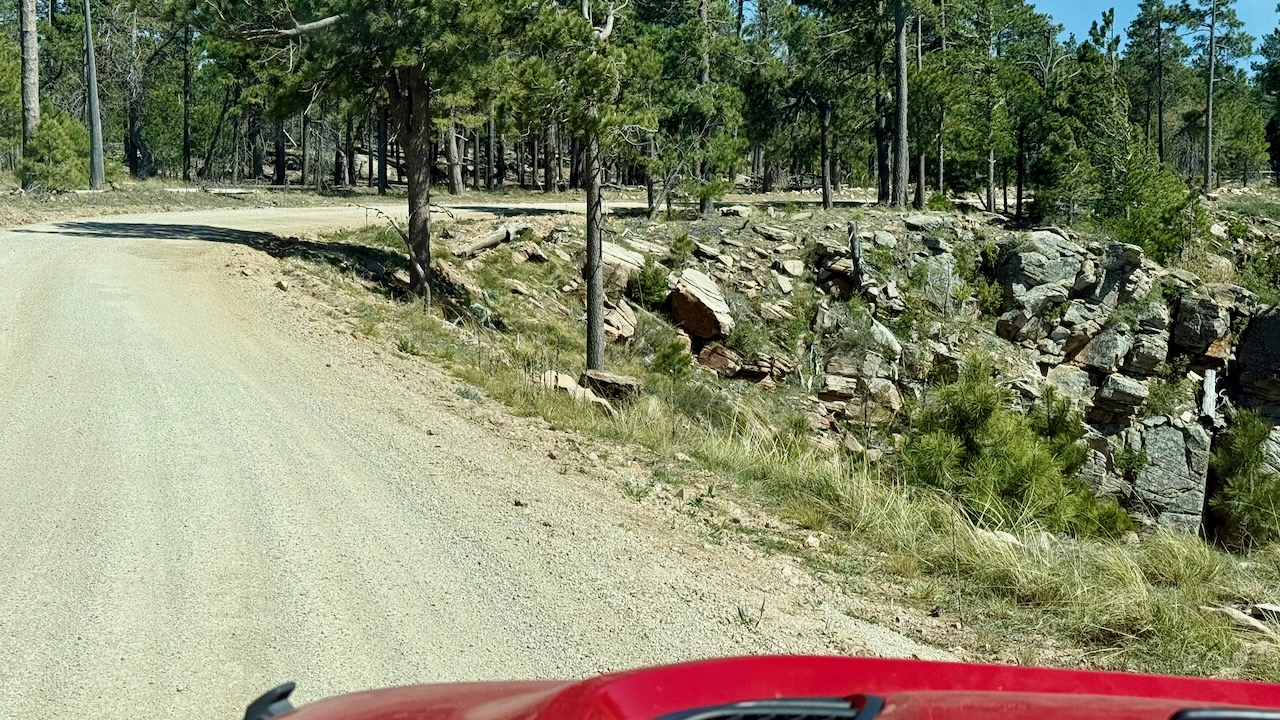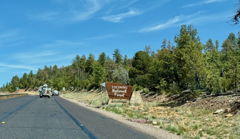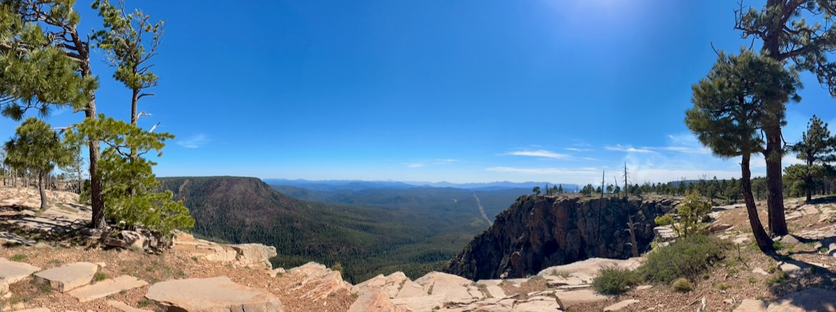 Soon after this view the road turned away from the rim, became paved, and we could go much faster. Sadly, the Mogollon Rim Visitor Center was closed, so no stamp.