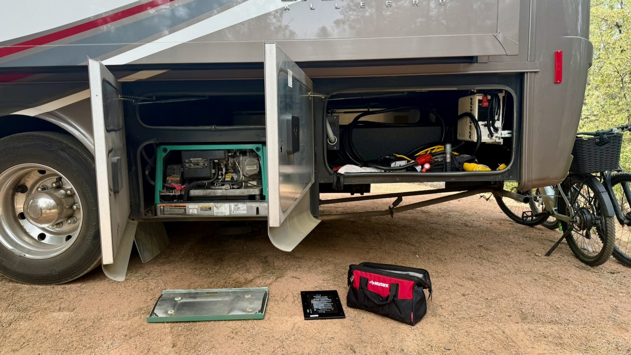 Oh wait, 2 things first. Paul had been working on the AGS, Auto Generator Start. He had replaced the “remote” with a lithium battery ready one, we should charge much faster, the generator worked the previous day, and it was running on our way out to lunch. Except the batteries weren’t charging.