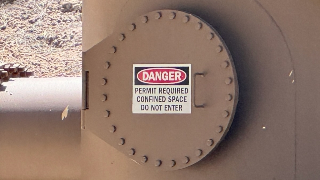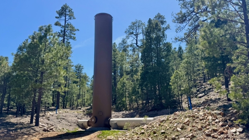 We saw this strange structure with a very large pipe going in and out. Our best guess is that it is for water hammers, just like the small ones hidden in your walls at home.
