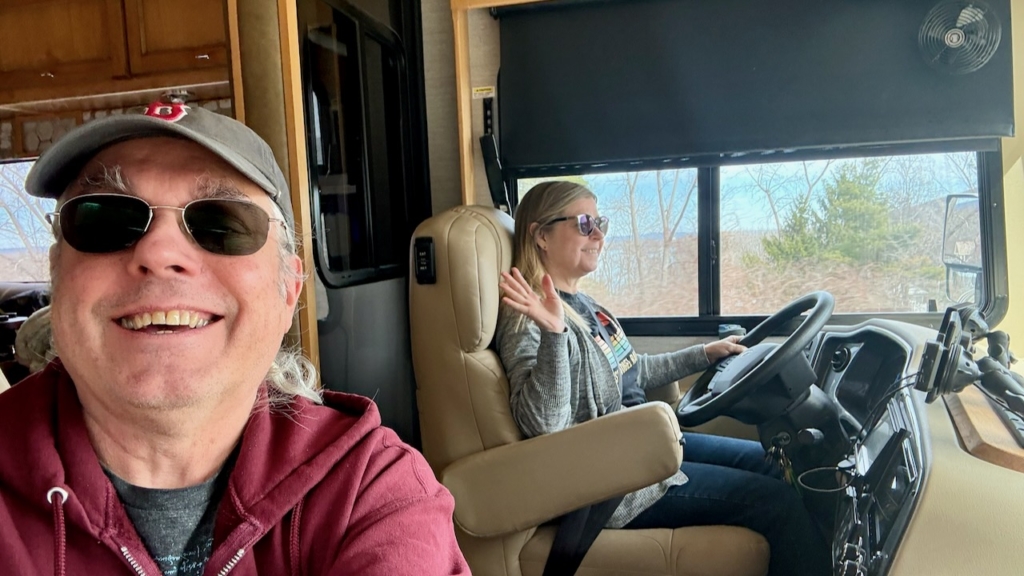 Paul was chatting with their good friends Fred and Diana about they’re yet to have their RV  delivered, and yes, it is broken again. Something is leaking, which somehow means it might need a new windshield, and Diana said, “Tell us when you hit the road.” So Paul did, in the best way possible.