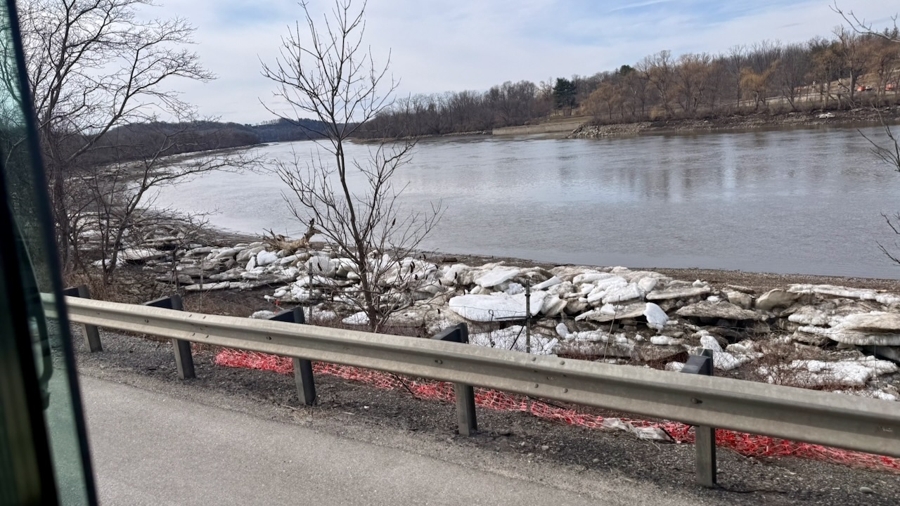 But we did get to see the ice on the side of the river. We saw this crossing the Connecticut River into Vermont. The high water had receded leaving huge chunks on the banks. Paul got lucky with this shot since he just took a shot of the rapids under the bridge.