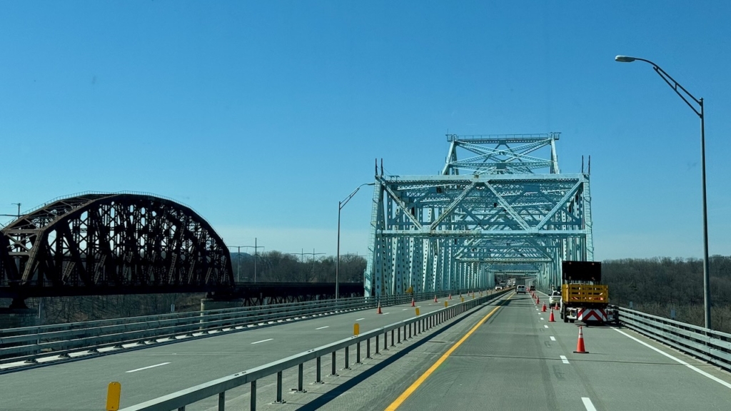 Next up, crossing the Hudson. Susan was happy Paul was driving, she always seems to get this bridge. (susan here: it used to have Jersey barriers so this trip wasn’t as squished. I’ve also had to drive it in bad thunderstorms. I do not like this bridge!)