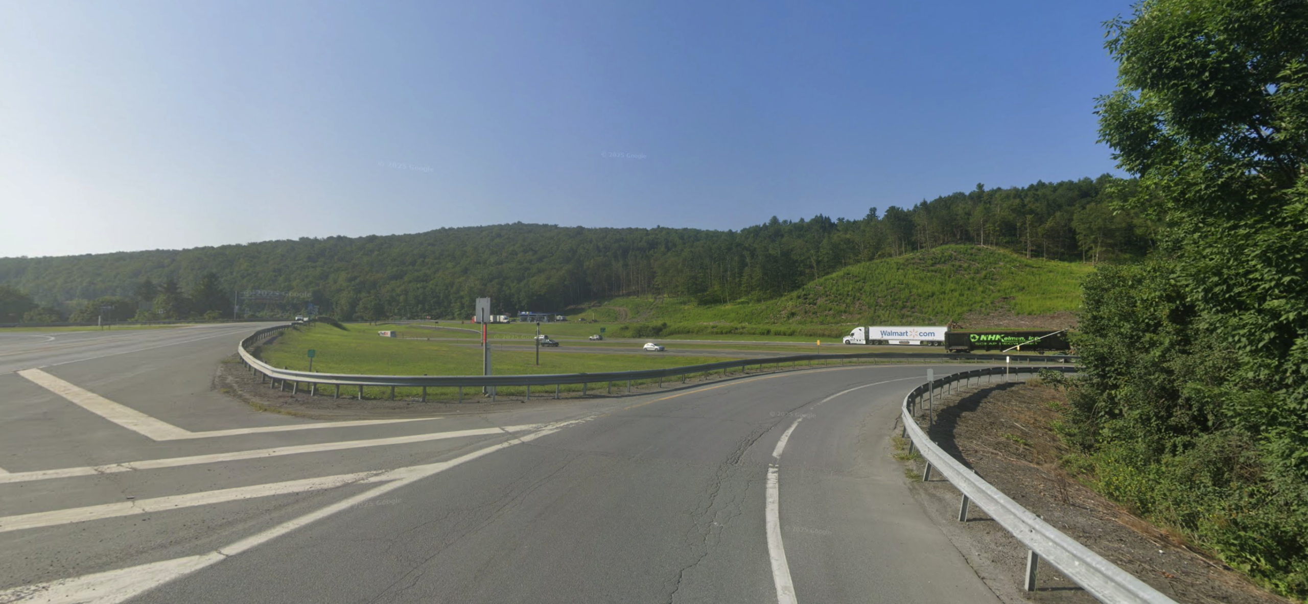We stopped next at the Onvo rest stop in NY to get weighed. That gas was $0.20 cheaper than on the Mass Pike. Leaving we saw the ramp to the highway which Paul was about to go down until we saw all the DO NOT ENTER signs. He didn’t but now how do we get back to the highway? You can’t, you can only got Eastbound!